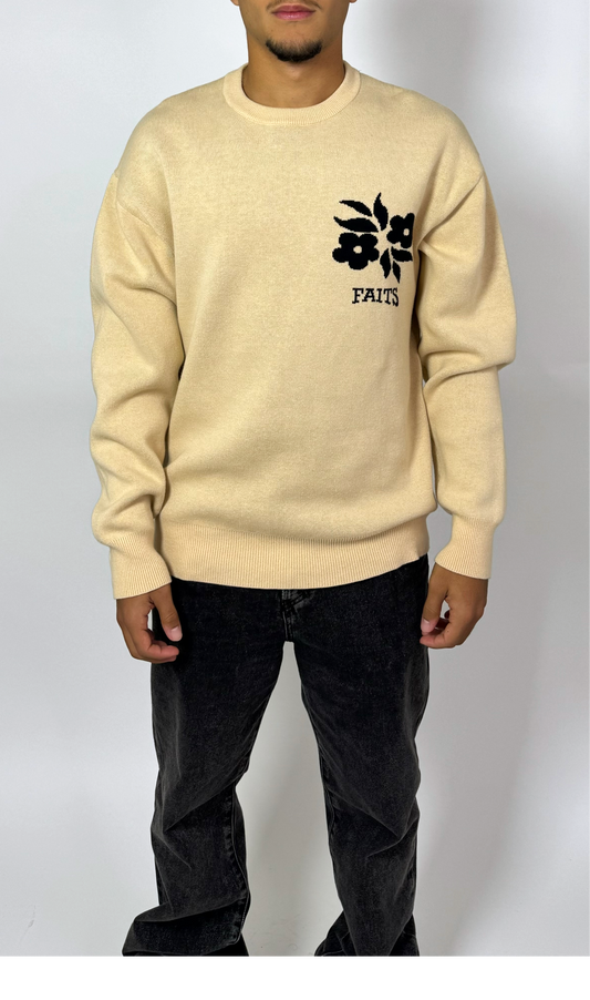 Flower Jaqcuard Knitwear Beige
